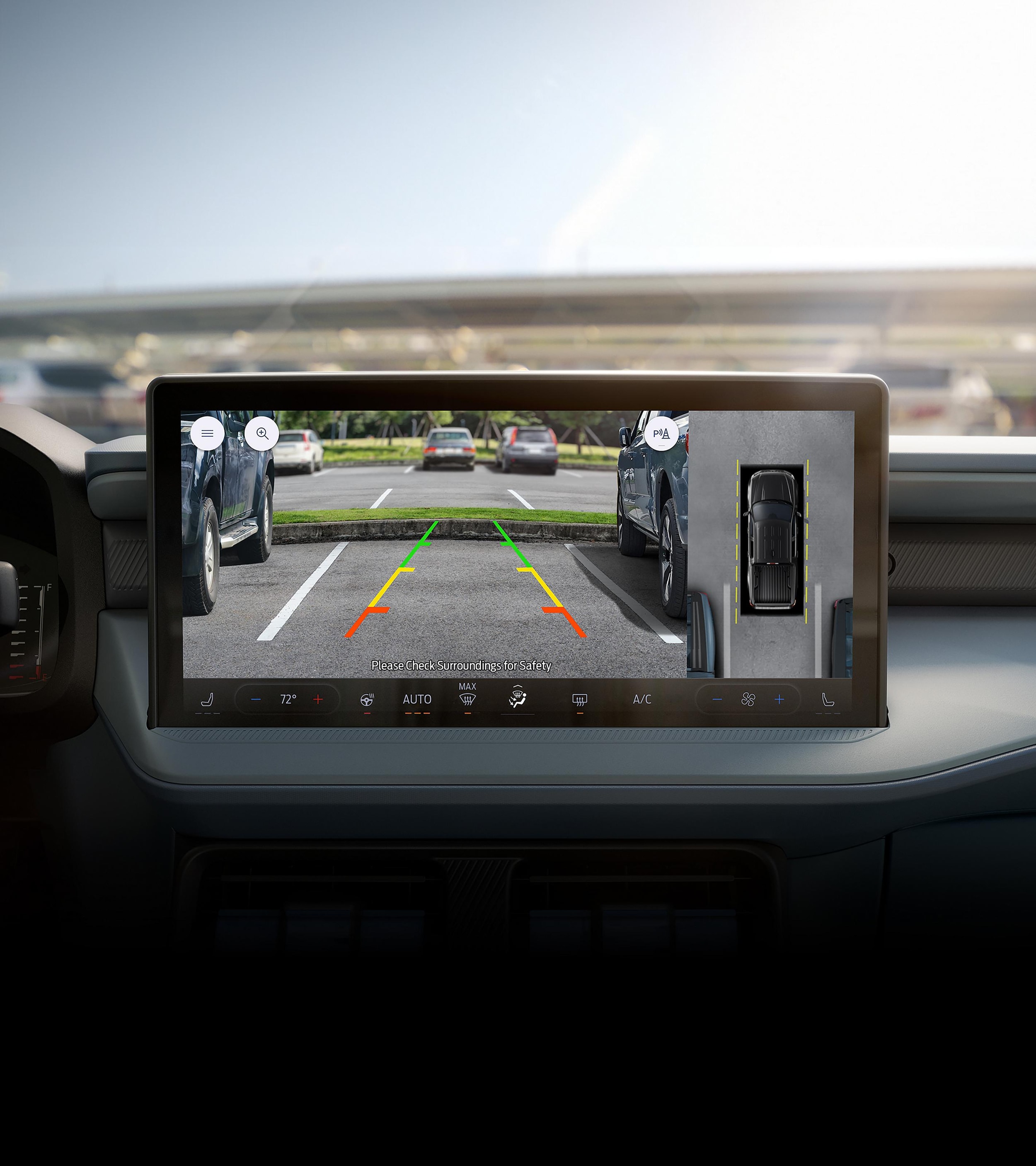 Improve visibility while you're backing up. Front, side and rear cameras provide visibility around your pickup, help avoiding obstacles and keeping pedestrians in view.